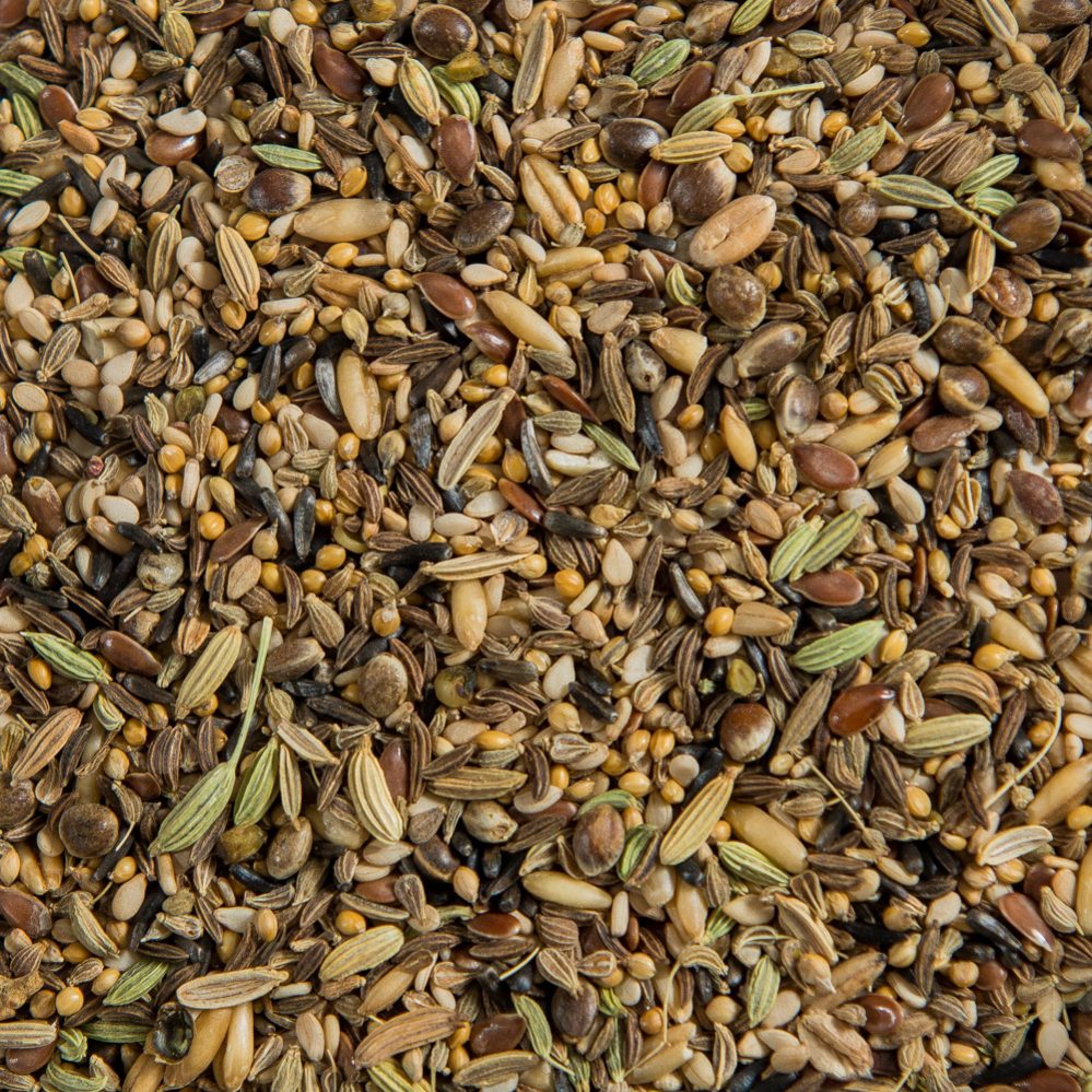Sesame, golden German millet, Nyjer, groats, hemp, flax, caraway, fennel, anise seed.